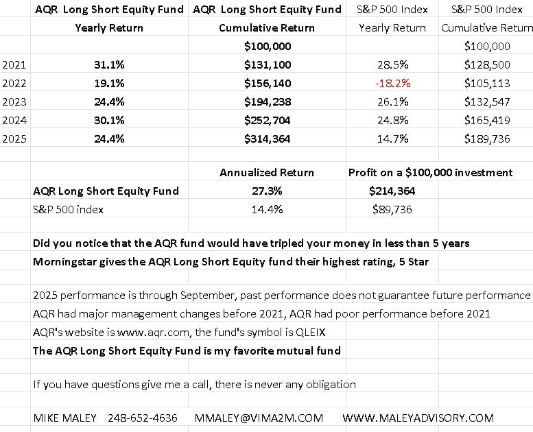 My Favorite Mutual Funds have a history of profitability in both Bull and Bear markets. A spreadsheet comparing My Favorite Mutual Fund to the S&P 500 index is below. Besides government and religious organizations, Blackstone is the largest owner of commercial real estate in the world. I use a couple of Blackstone limited partnerships that have impressive returns over the years.